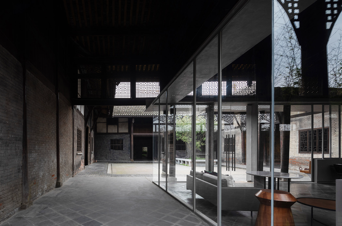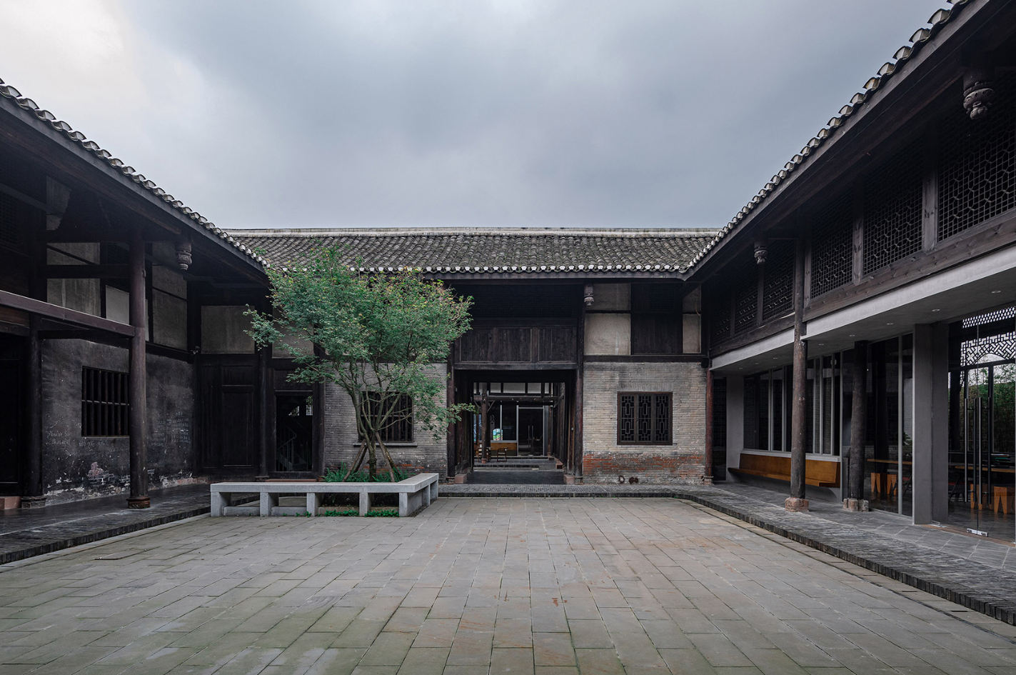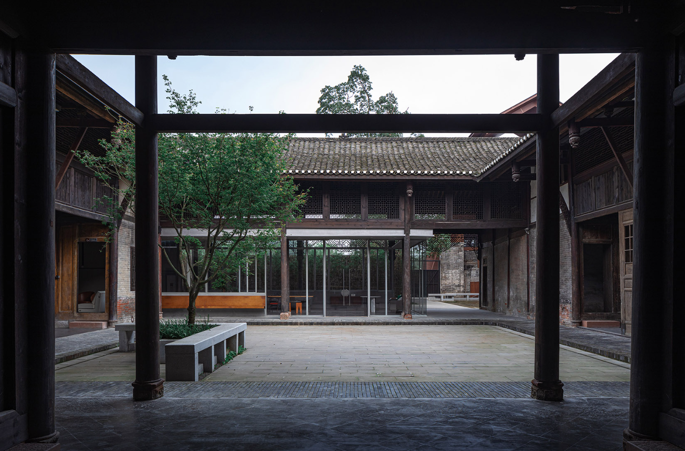 The Visitor Center of Anren Ancient Town is a renovation and expansion project of Liao Wei Mansion, located on the edge of Anren Ancient Town in southwest Chengdu. Originally a private residence, Liao Wei Mansion now serves as the historical “gene” of the old town. It has become the starting point of the new block, formed a new cluster of “Linpan” (a traditional Sichuan rural settlement with houses surrounded by woods and farmland) spaces, and stands as a research sample for China’s new town development. For design, a rescue-based “disassembled overhaul” was adopted to protect this cultural relic. The expanded part uses steel structures and lightweight materials; though adjacent to the old walls and the original mansion, maximum efforts were made to protect existing building components during and after construction. Besides, based on the layout of the original courtyard complex, the three-courtyard structure was expanded to five, continuing and enhancing the spatial features and architectural style of the sloped-roof building cluster, thus forming an integrated whole of old and new elements.