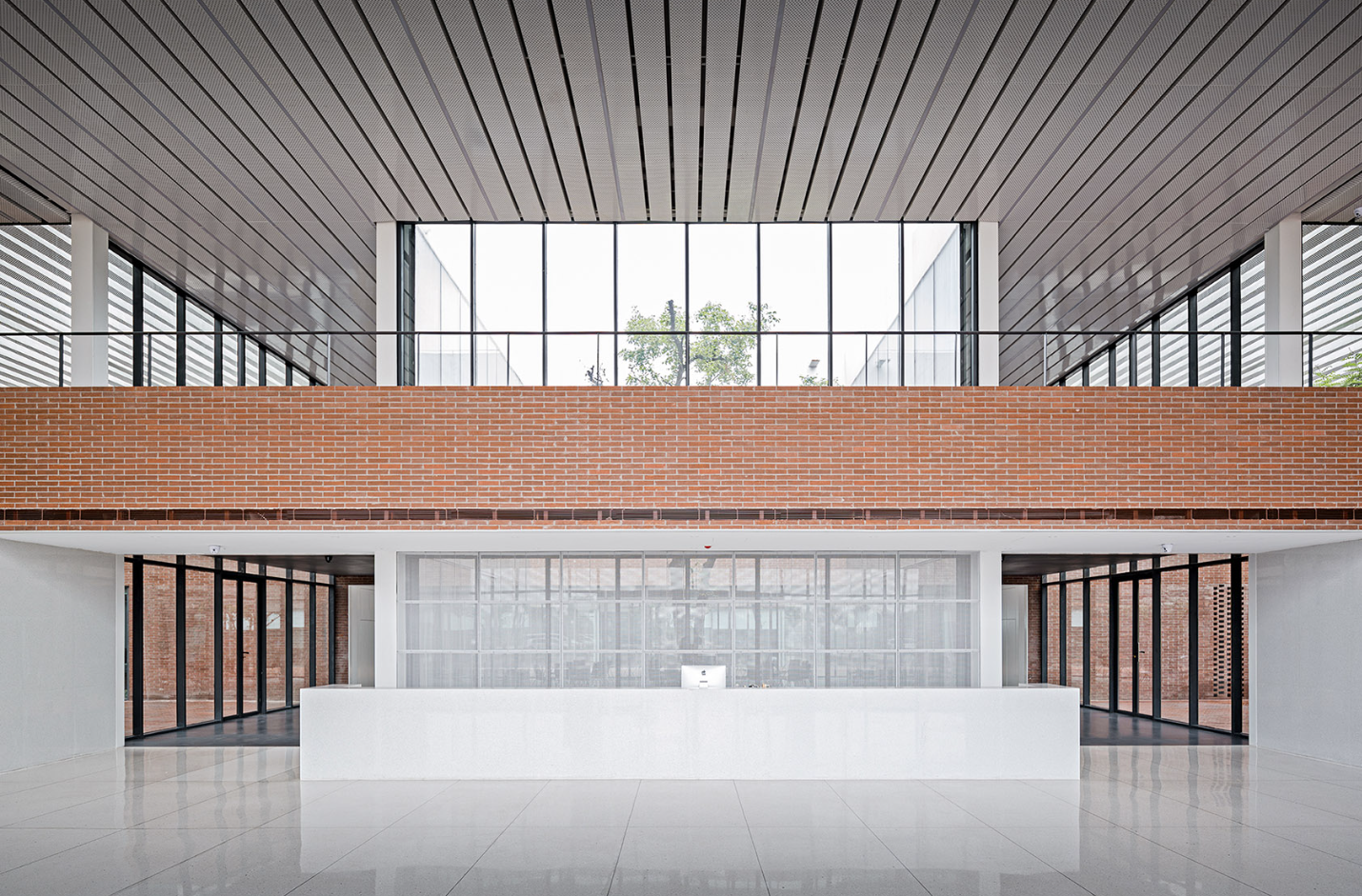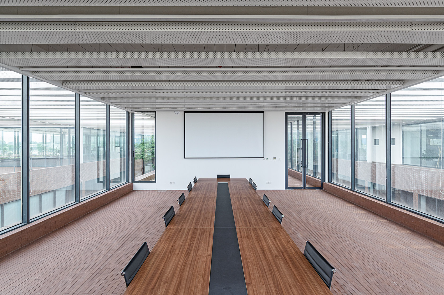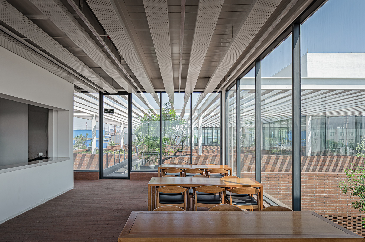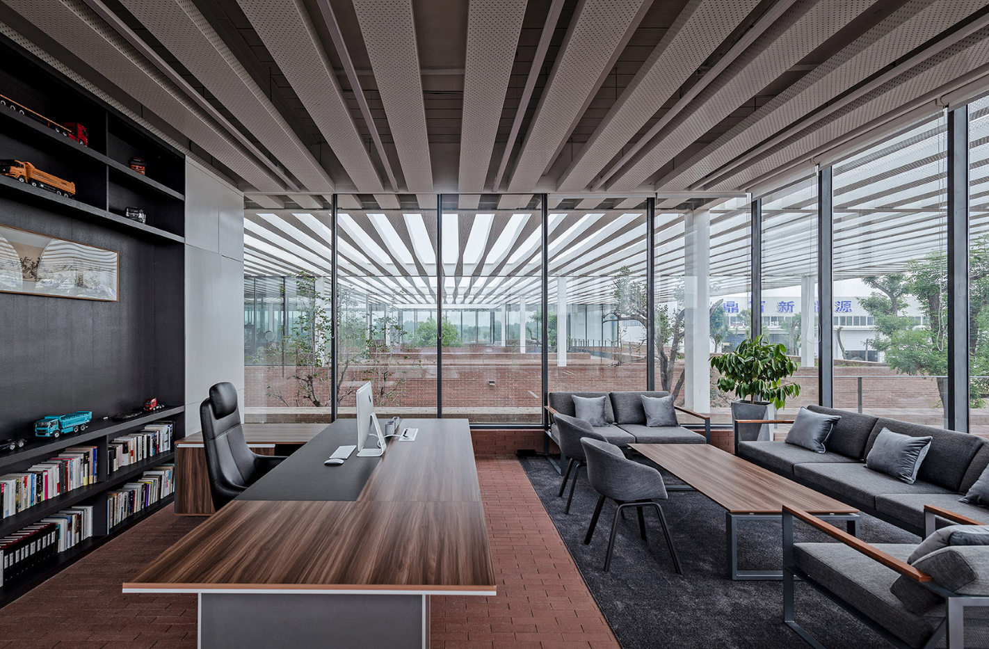This project is located in an industrial workshop area on the outskirts of the city. The park site is open and flat: the office building is planned in the middle of the park, with gardens composed of pine forests, lawns and walkways distributed on the east and west sides, and a wide front square and parking lot reserved on the south side. With relatively relaxed land use conditions, the design organizes the building spatial layout fully around the courtyard relationship, and creates diverse scenarios between the interior and exterior by combining functional needs and circulation paths, so as to build a sunny, green and vibrant working environment.