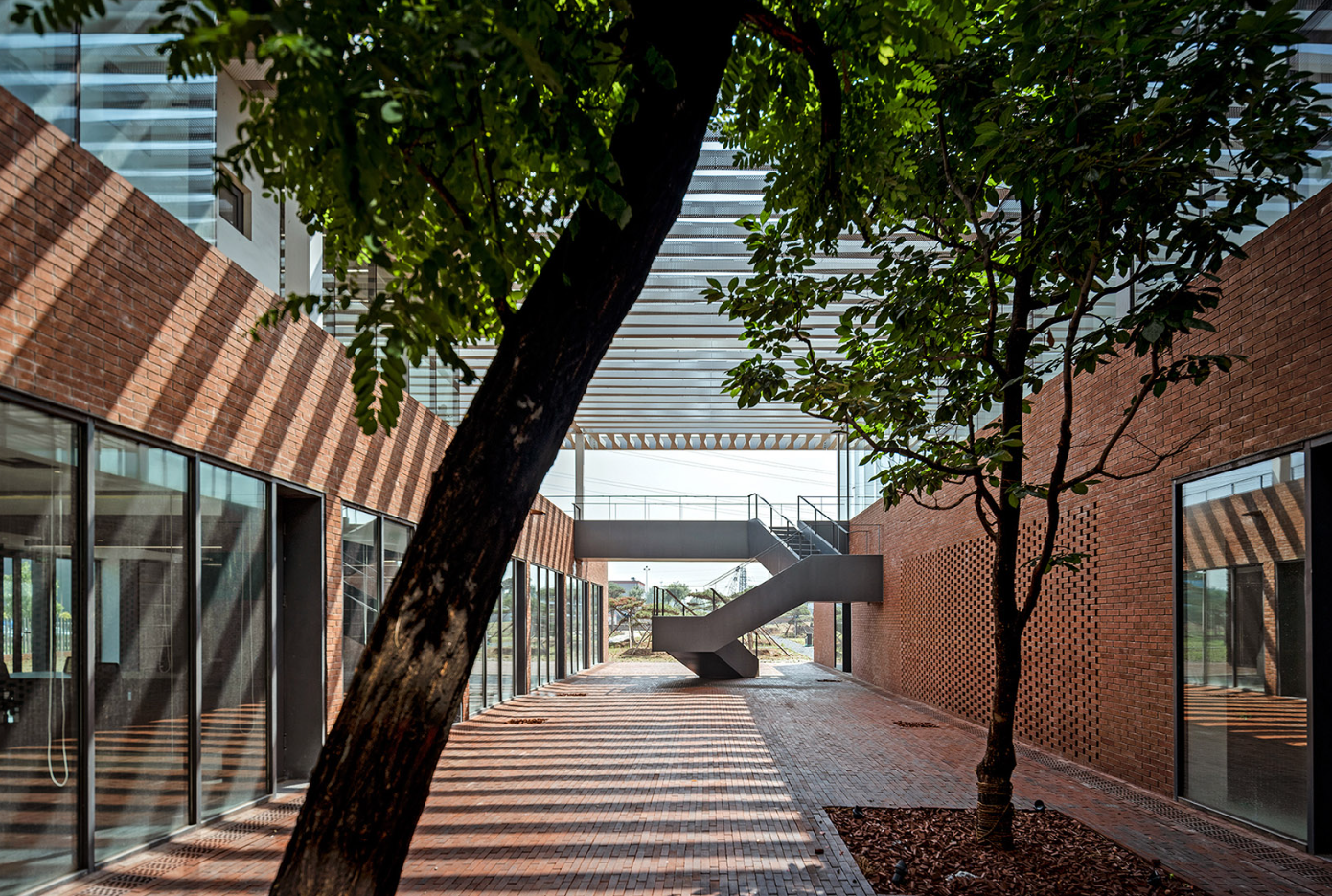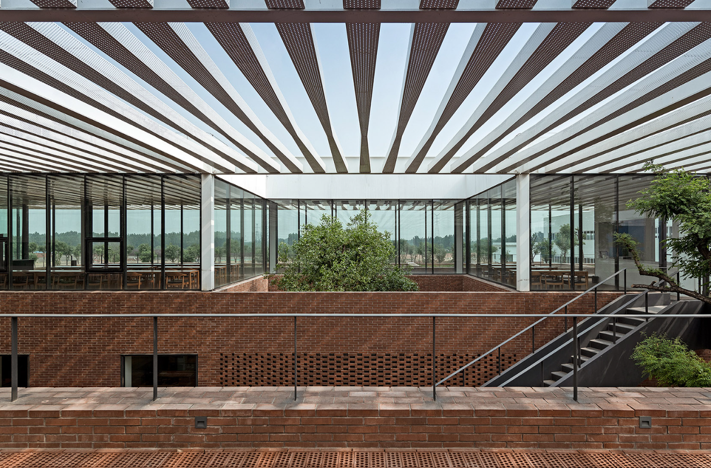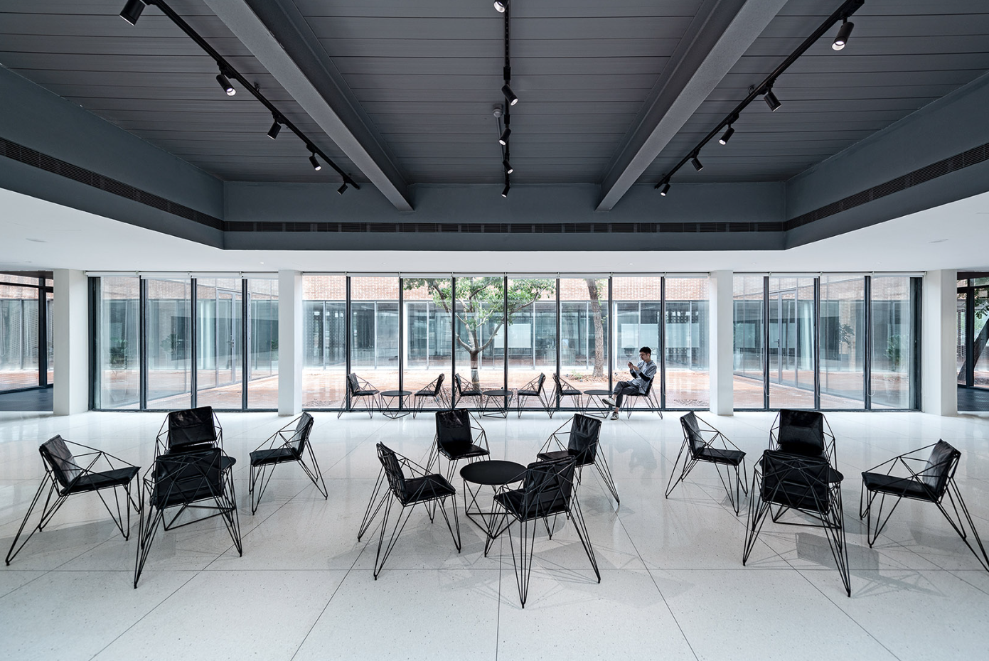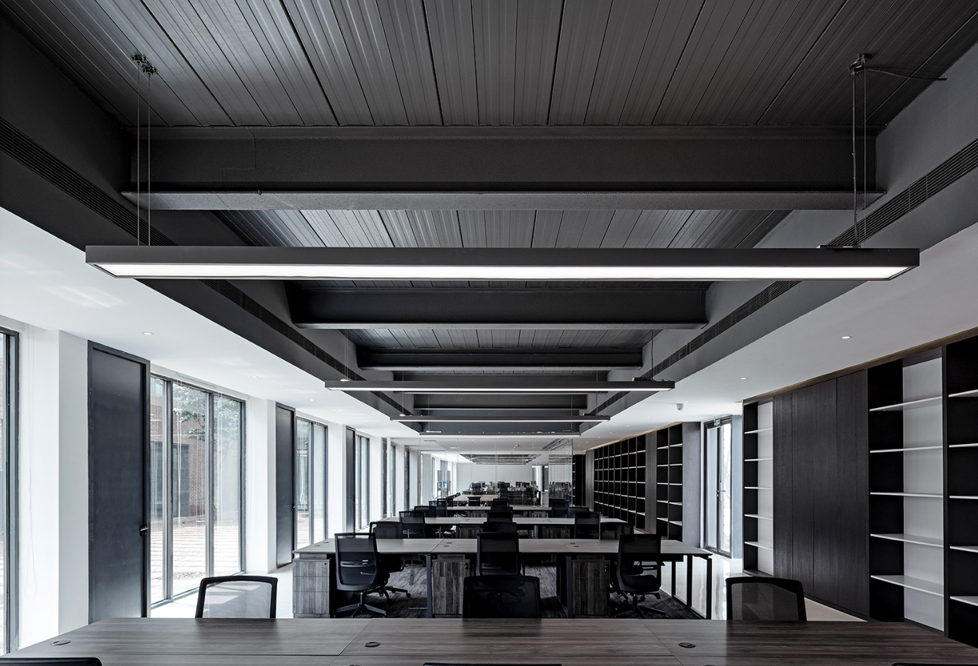 This project is located in an industrial workshop area on the outskirts of the city. The park site is open and flat: the office building is planned in the middle of the park, with gardens composed of pine forests, lawns and walkways distributed on the east and west sides, and a wide front square and parking lot reserved on the south side. With relatively relaxed land use conditions, the design organizes the building spatial layout fully around the courtyard relationship, and creates diverse scenarios between the interior and exterior by combining functional needs and circulation paths, so as to build a sunny, green and vibrant working environment.