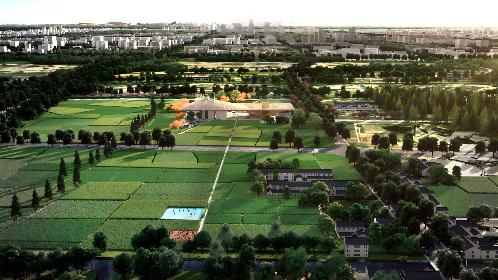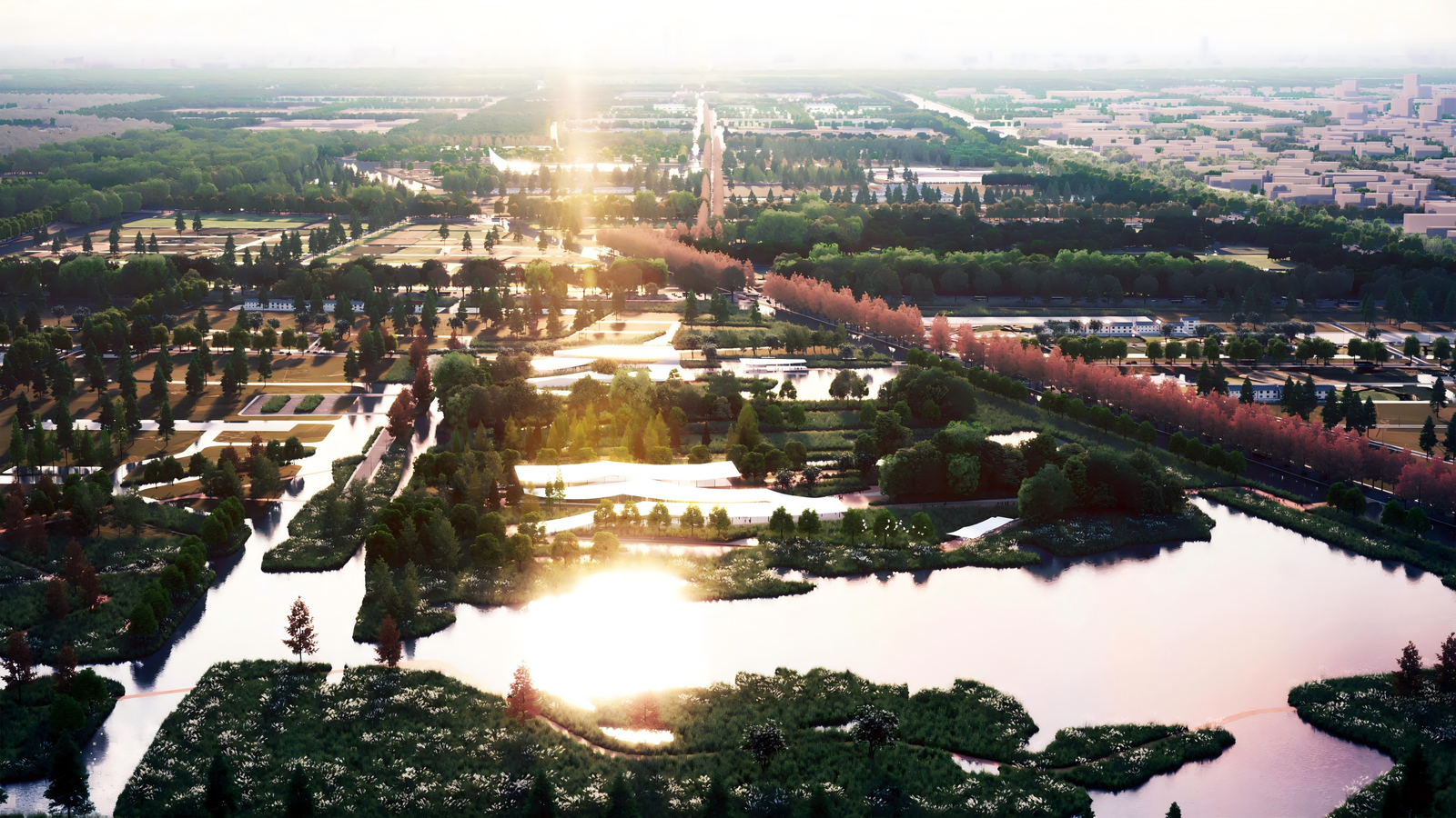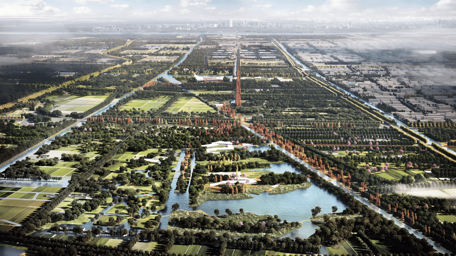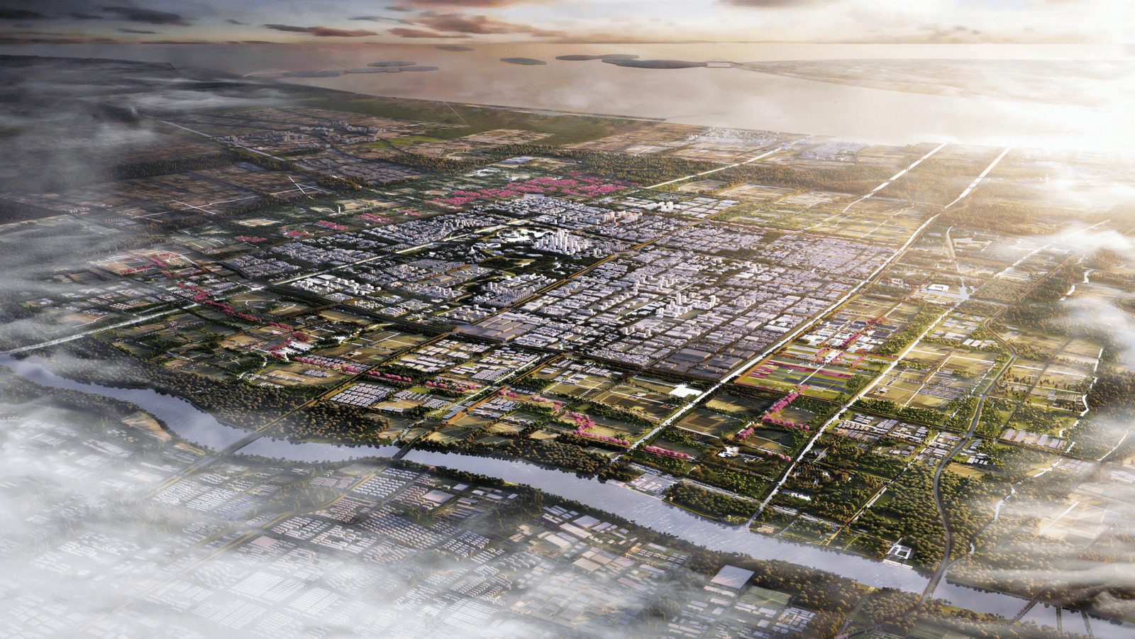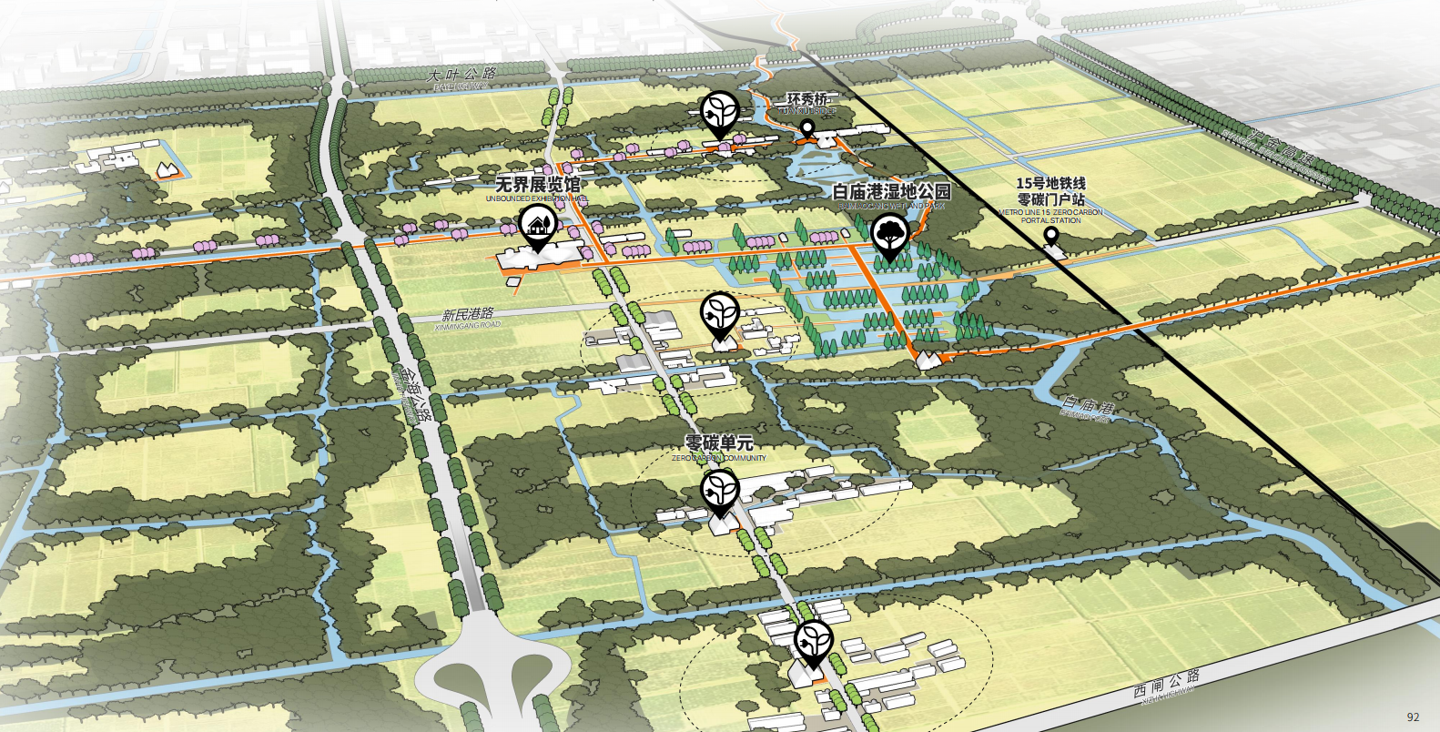 This plan centers on the integration of urban, rural, and wild spaces to create a sustainably operated community green loop for the new city.