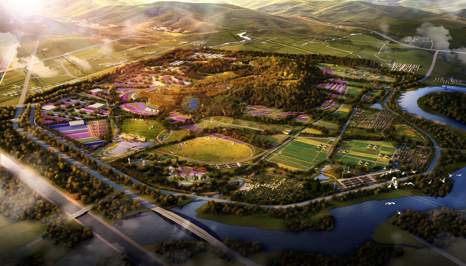 It empowers culture and tourism by developing diverse formats such as farming experiences and wellness activities within themed zones.