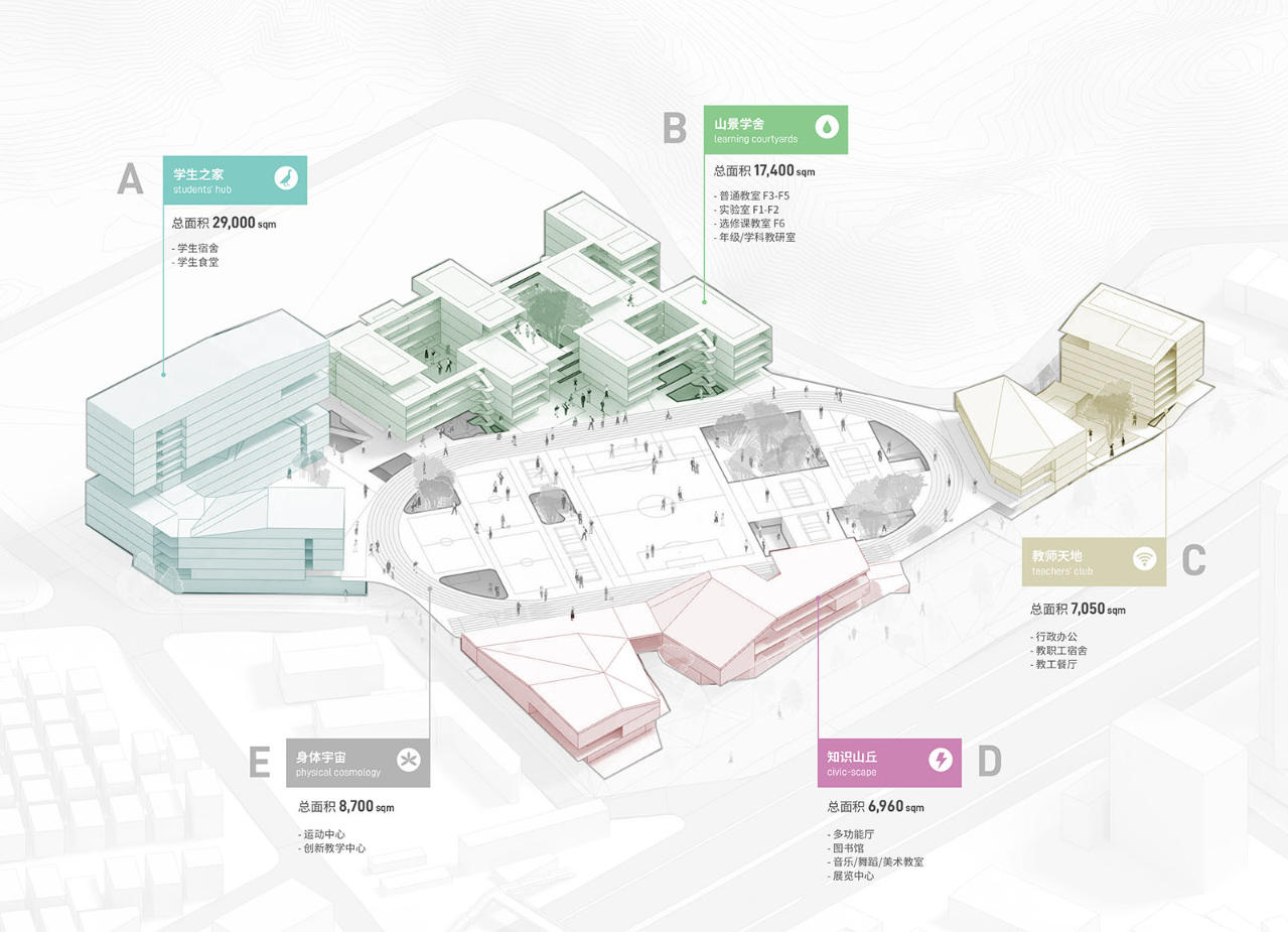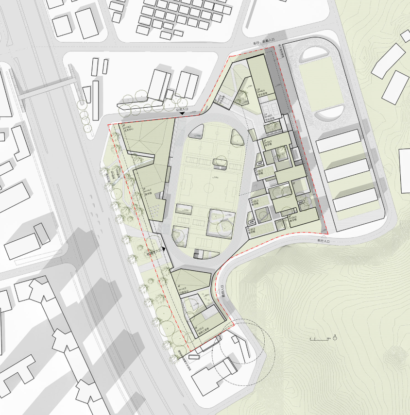 From an aerial view, the project seems to be a continuation of the surrounding mountain ridges, forming an integral whole with the mountains—as if one can hear the soft whispers of nature. Facing the undulating terrain, diverse hydrological conditions, and abundant ecological vegetation, and situated between nature and the city, in what way should the design intervene? In our design vision, we aim to learn from the surrounding rich “urban-nature gene pool”, interpret the site in a humble and sensitive manner, awaken and activate the inherent primitive power within the site, and create an organic campus that grows naturally.