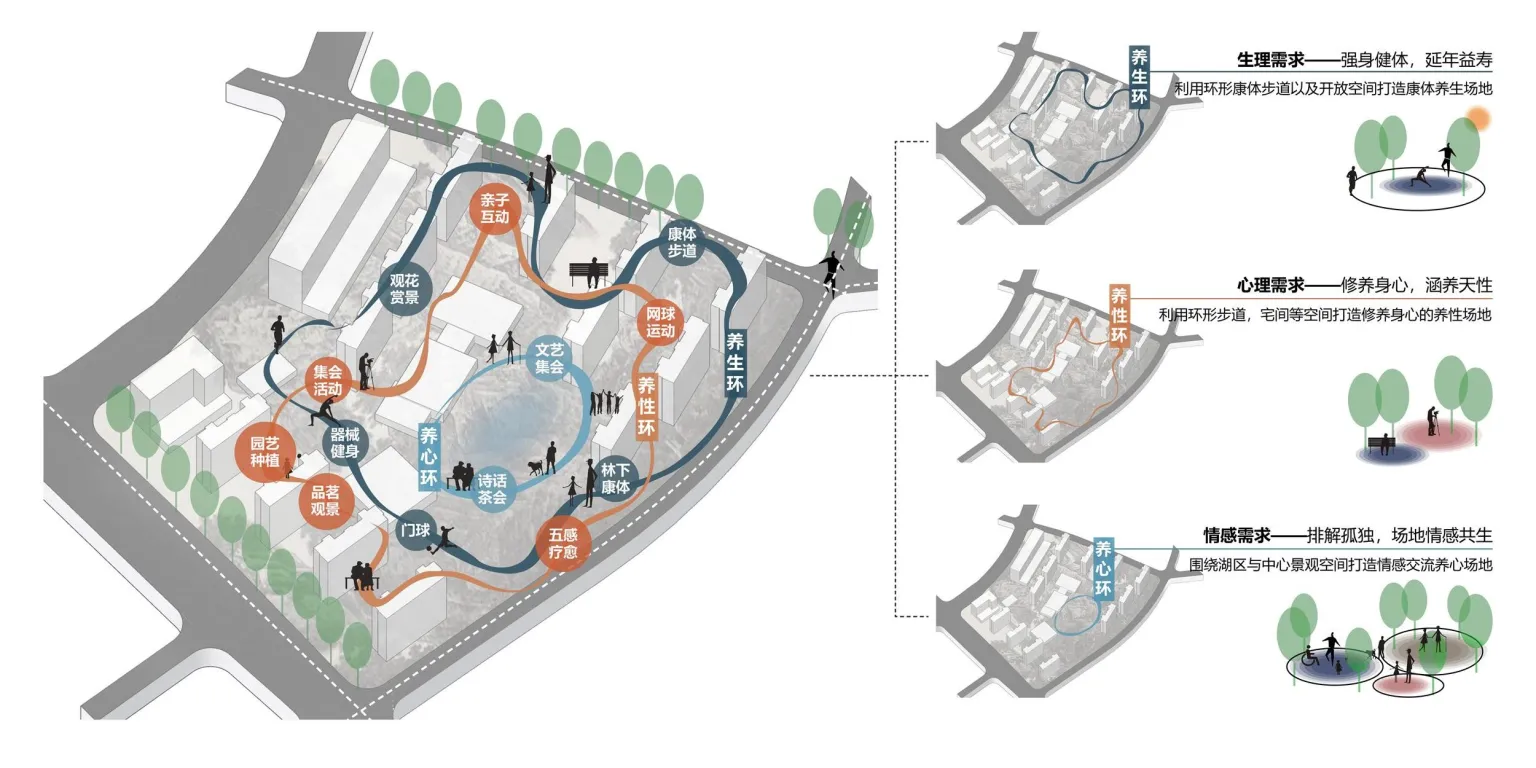 At the same time, the team pioneered the HASINC standard for aging landscape that is more suitable for the elderly in China.The principle of H humanization, the principle of A is easy to reach, the principle of S is the principle of safety, the principle of I is easy to identify, and the principle of N is ecological and natural. Basically, the non-uniformity of the venue enriches the opportunities for the elderly to contact the outside world and participate in public activities, in order to obtain emotional comfort and psychological compensation, and to achieve the reconstruction of social relations.