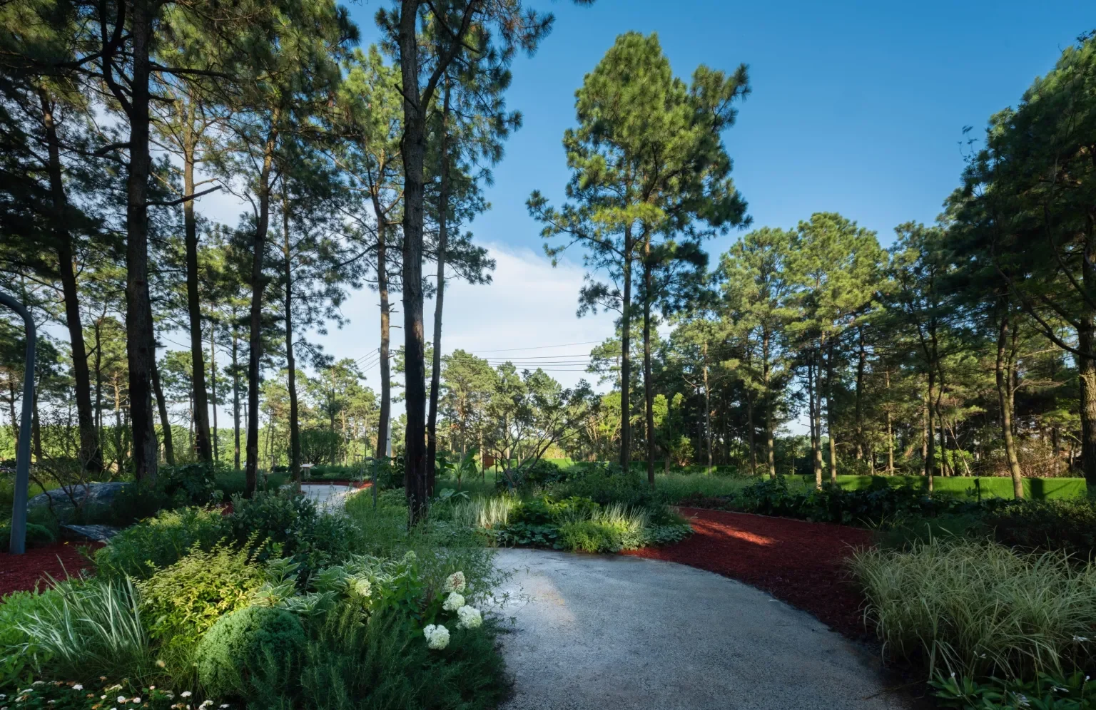 The project’s first opening area was delivered in real life, and the team made the site as permanent as possible. The design retains 1,200 native coastal pine forests on the site, and maintains the original mountain terrain as much as possible, and directly seeks a balance between economy, landscape effects and functions.