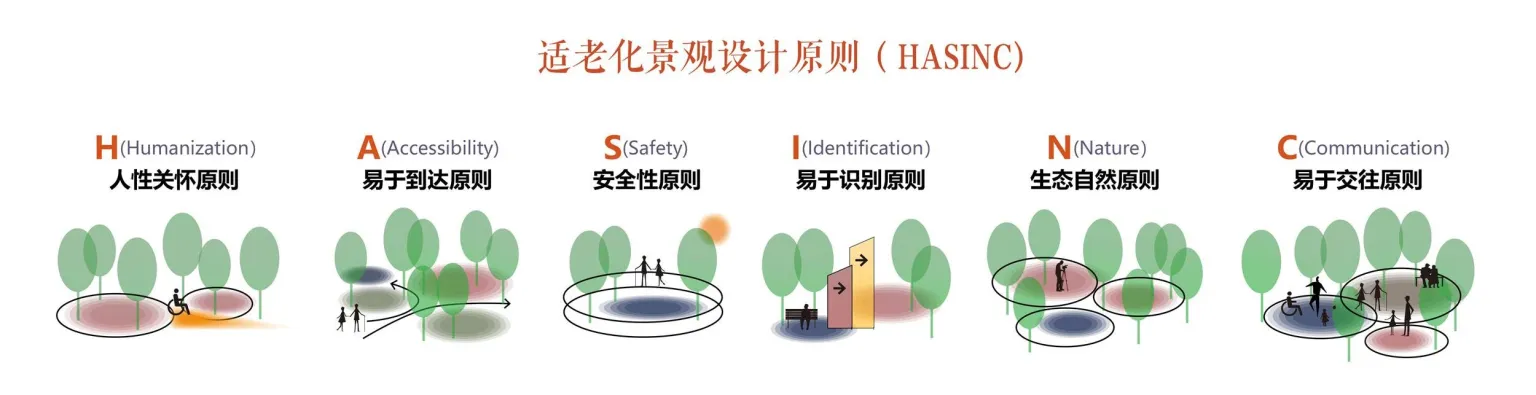 At the same time, the team pioneered the HASINC standard for aging landscape that is more suitable for the elderly in China.The principle of H humanization, the principle of A is easy to reach, the principle of S is the principle of safety, the principle of I is easy to identify, and the principle of N is ecological and natural. Basically, the non-uniformity of the venue enriches the opportunities for the elderly to contact the outside world and participate in public activities, in order to obtain emotional comfort and psychological compensation, and to achieve the reconstruction of social relations.