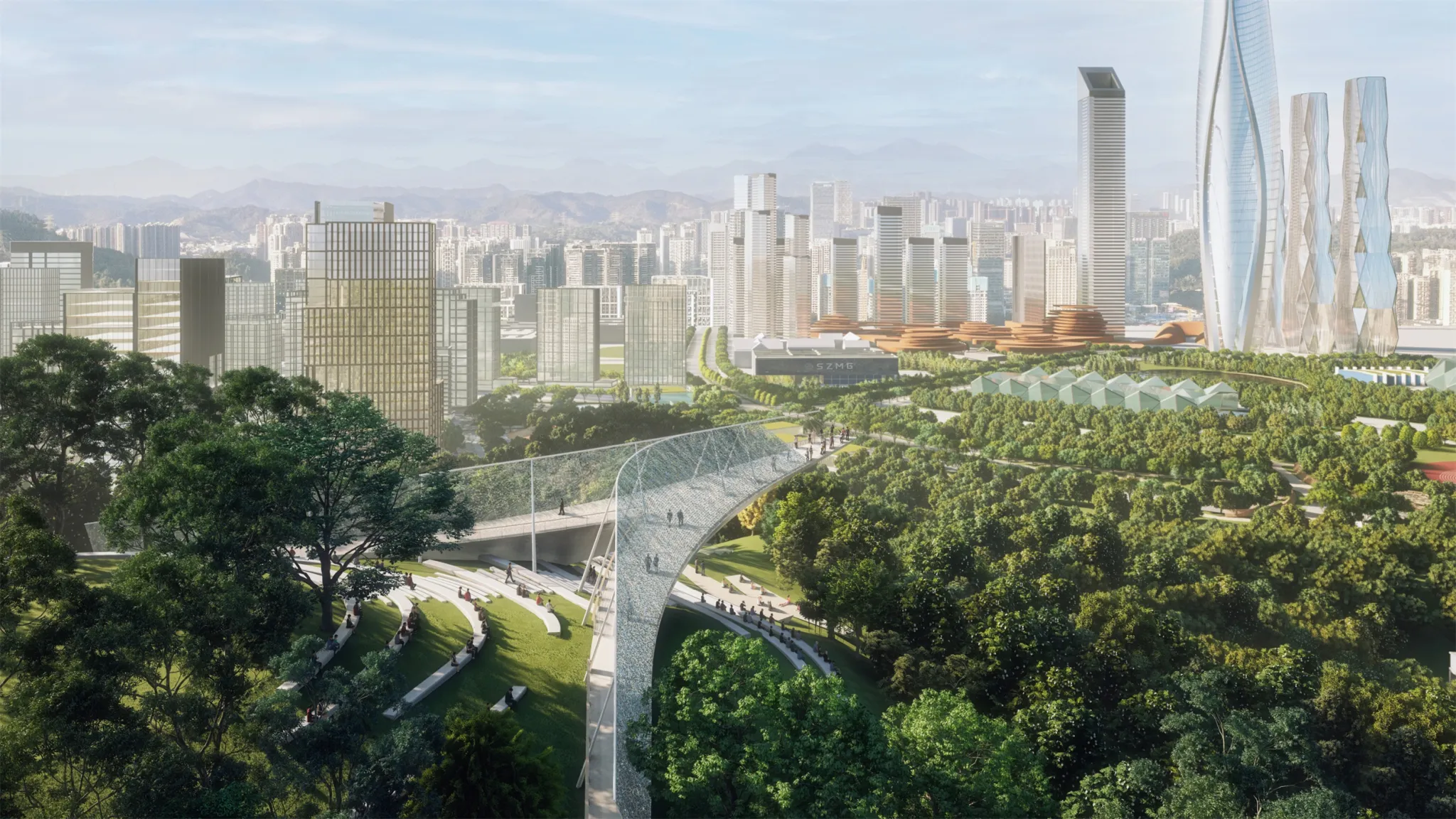 The cantilevered urban grandstand provides an ultimate viewing experience, showcasing Longgang’s open, inclusive, and friendly city image in a panoramic manner.