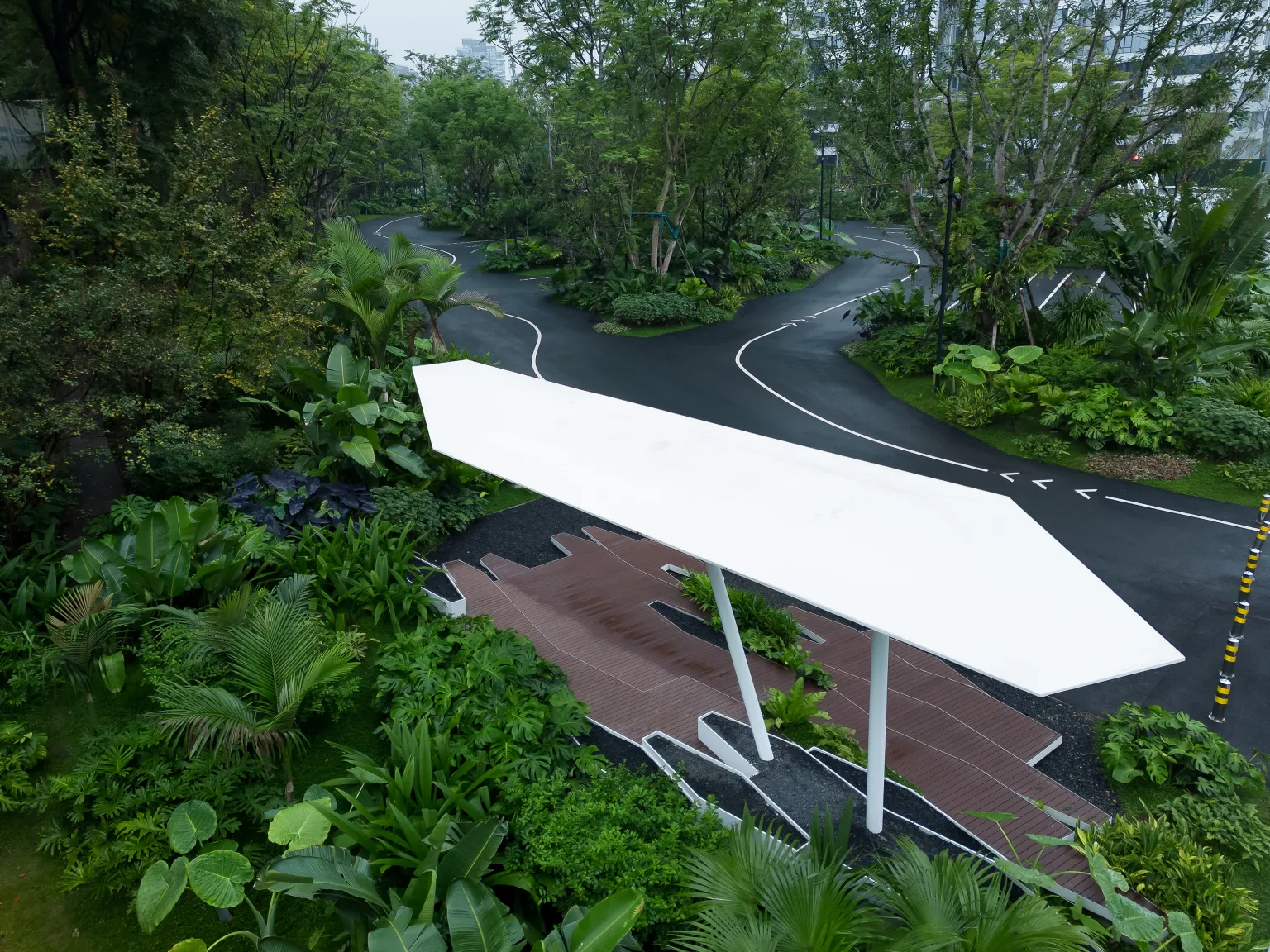 It breaks the stereotyped cognition of traditional parking lots, escapes from the inherent thinking of the field, reorganizes the frequently used public daily space from the dimension of environmental thinking, weakens the functional attributes of the site, converts the label of the site with plants, and allows people to experience nature in daily life.