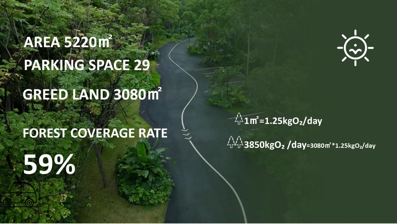 While retaining the native tree species on the site near the residential area, the thickness of the green belt is set to 11 meters to minimize pollution and noise.Plants use the common but rarely used plant toon trees and shrubs in Sichuan countryside to build vertical space and form an ecologically sustainable “island green lung”. Based on plant photosynthesis, the site can produce 3,850 kilograms of oxygen a day, and the car’s carbon emissions are 179.8 kilograms a day. Create ecological microclimate, reduce the concentration of automobile exhaust emissions, improve the surrounding environment.