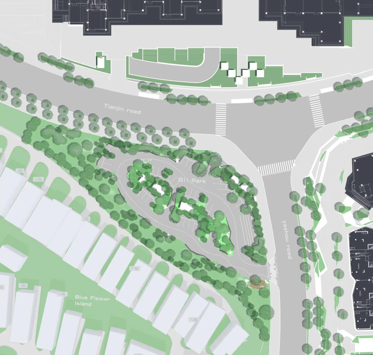 The whole “Luhu Community” is the first key community of Chengdu Park City (the second batch of near zero carbon pilot communities in Chengdu). In addition to carrying public transportation system and infrastructure to improve transportation convenience, the organic penetration and integration of park and urban space will be the beginning of giving more possibilities to this small site. With the dimension of exploring low-carbon operation and maintenance of urban parks, we think about the field topography — how can urban green space become a multi-functional green public space?